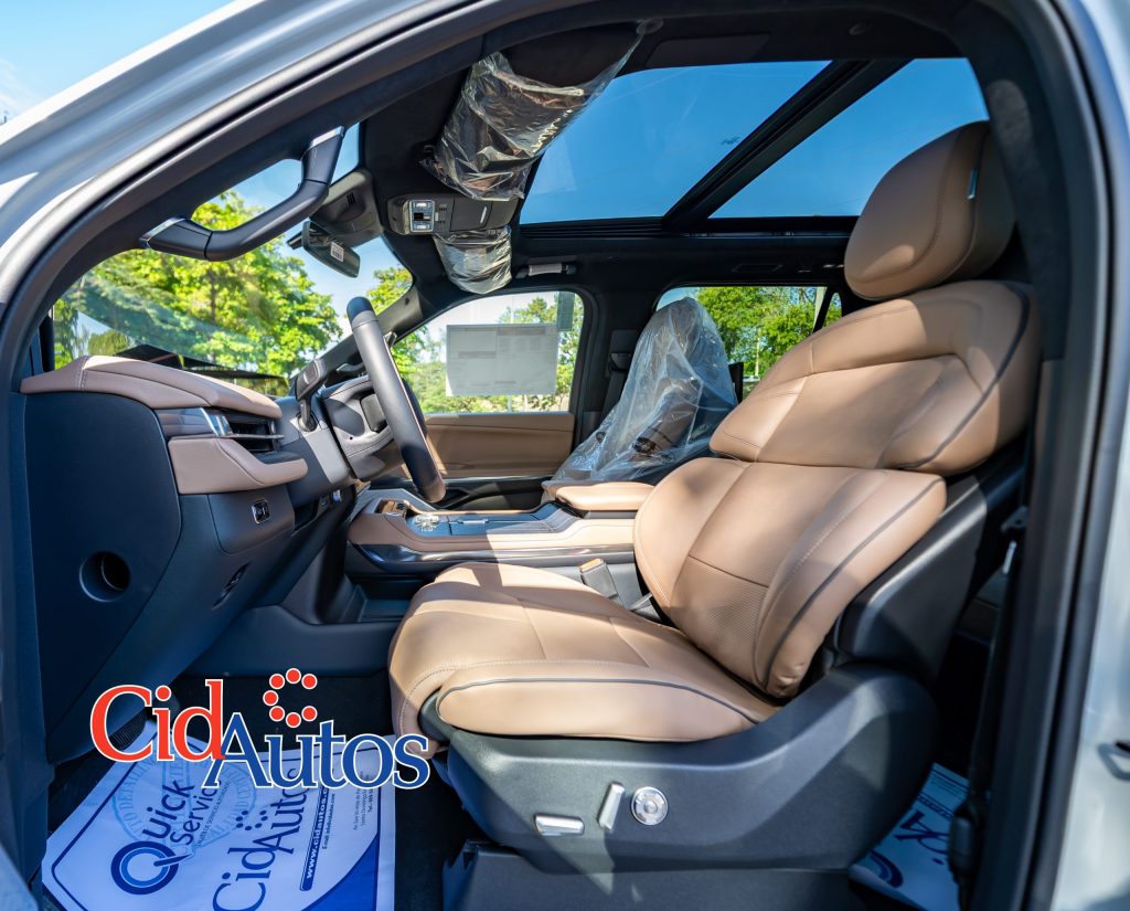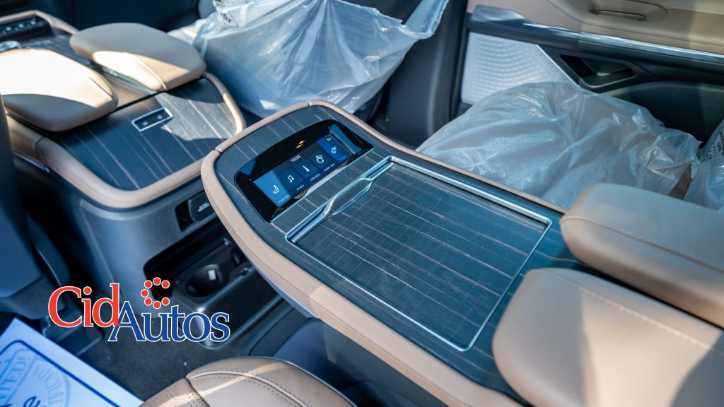 • Consola central flow-through con detalles en cuero.